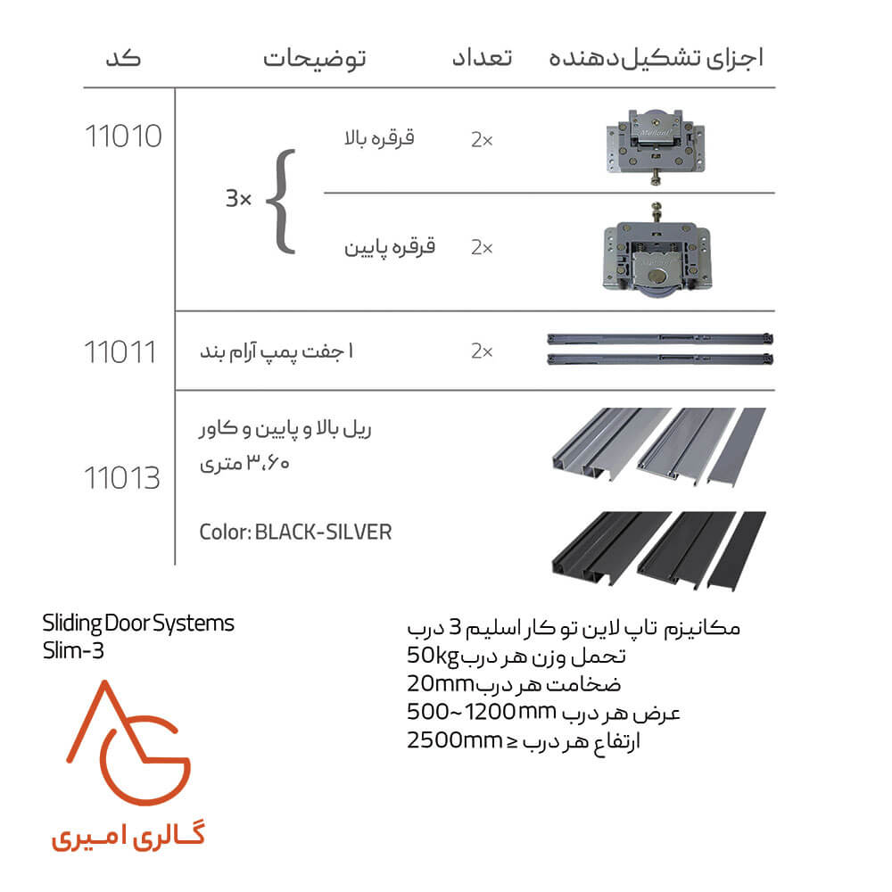 مکانیزم تاپ لاین تو کار اسلیم 3 درب